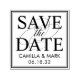 A crisp square frame surrounds your save the date details (names and wedding date) with "save the date" in an elegant mix of block and calligraphy script typefaces.