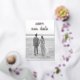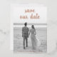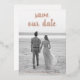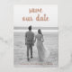 Photo save the date card featuring your full bleed vertical picture and a text overlay with "save our date" in a thick script handwriting along with your names and date in real rose gold foil. The backside has all of your wedding details in black over a white background. A simple and modern design that makes your photo the main feature.
