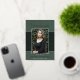 A unique photo graduation announcement card, featuring design elements of elegant handwritten style script. The word "Graduate" and the graduates name in real foil (foil colour options are gold, silver and rose). The graduates photo is thinly edged in a white border and decorative wavy trim. The design is complimented with a background in shades of mint green. The back of the card offers a personalised announcement text space for that special graduate. To see more items like this, visit my store here at "www.Zazzle.com/LakeViewCardCo". Thanks