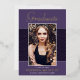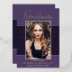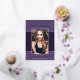 A unique photo graduation announcement card, featuring design elements of elegant handwritten style script. The word "Graduate" and the graduates name in real foil (foil colour options are gold, silver and rose). The graduates photo is thinly edged in a white border and decorative wavy trim. The design is complimented with a background in shades of purple and violet. The back of the card offers a personalised announcement text space for that special graduate. To see more items like this, visit my store here at "www.Zazzle.com/LakeViewCardCo". Thanks