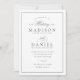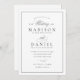 This elegant and modern wedding invitation features unique calligraphy script paired with stylish type. The black and white colour scheme is perfect for any event, formal or casual. The back side includes all your wedding details in one location, making it easy for your guests and a budget friendly option.