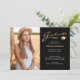 This double sided 2 photo stylish graduation announcement or thank you card, features modern text fused with elegant calligraphy script in gold colour and white on black. Photos are one on the front and one on the back, perfect for framing. The background can be easily customised to a colour of your choice. To see more items like this, visit my store here at "www.Zazzle.com/LakeViewCardCo". Thanks