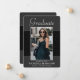 Beautiful 1 photo 5"x7", graduation announcement cards. Featuring modern text with elegant script. The graduates photo is thinly edged in a white border and decorative wavy trim. The design is complimented with a background in shades of dark platinum grey and regal black. The back of the card offers a personalised announcement text space for that special graduate. To see more items like this, visit my store here at "www.Zazzle.com/LakeViewCardCo". Thanks