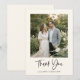 Modern Elegant Script Black Ivory Photo Wedding Thank You Card