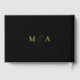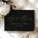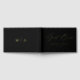 Elegant wedding guestbook featuring "Guest Book" displayed in a modern foil calligraphy script with a black background. Personalise the front of the black and gold foil wedding guest book with your names and wedding date. The back of the guest book displays your monogram initials. Add your married name and wedding date to the spine of the guest book.