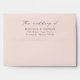 Simple, modern wedding envelopes featuring "the wedding of" displayed in an elegant black calligraphy script on a light blush pink background. Personalise the envelope flap with your names and return address.