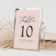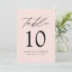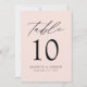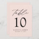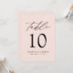 Trendy, minimalist wedding table number cards featuring black modern lettering with "Table" in modern calligraphy script. The design features a blush background or a colour of your choice. The design repeats on the back. To order the blush table cards: add your name, wedding date, and table number. Add each number to your cart individually and check out when you're finished.