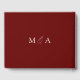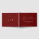 Elegant wedding guestbook featuring "Guest Book" displayed in a modern white calligraphy script on a rusted burgundy background. Personalise the front of the simple wedding guest book with your names and wedding date. The back of the burgundy guest book displays your monogram initials. Add your married name and wedding date to the spine of the guest book.