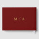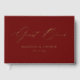 Elegant wedding guestbook featuring "Guest Book" displayed in a modern foil calligraphy script with a burgundy background. Personalise the front of the burgundy and gold foil wedding guest book with your names and wedding date. The back of the guest book displays your monogram initials. Add your married name and wedding date to the spine of the guest book.