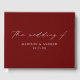 Elegant wedding guestbook featuring "the wedding of" displayed in a modern white calligraphy script on a rusted burgundy background. Personalize the front of the simple wedding guest book with your names and wedding date. The back of the burgundy guest book displays your monogram initials. Add your married name and wedding date to the spine of the guest book.