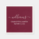 Modern personalised burgundy wedding paper napkins with a modern script font. Easily personalise online. Matching items available to complement these minimalist burgundy wedding paper napkins.
