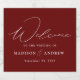The modern wedding sparkling wine labels featuring "Welcome" displayed in an elegant white calligraphy script on a burgundy background. Personalise the burgundy wedding sparkling wine labels with your names and wedding date. The simple wedding sparkling wine labels are perfect to use for wedding receptions, rehearsal dinners, and engagement parties.