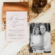 Our modern rehearsal dinner invitations feature the words "Rehearsal Dinner" displayed in an elegant black calligraphy script with an ivory cream background (or colour of your choice). Personalise the cream rehearsal dinner invitations with your names, the date, rehearsal information, and dinner details. The invite reverses to display your full-bleed vertical engagement photo. The photo rehearsal dinner invite is perfect to use for both casual and formal rehearsal dinners.