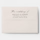 Simple, modern wedding envelopes featuring "the wedding of" displayed in an elegant black calligraphy script on a cream background. Personalise the envelope flap with your names and return address.