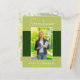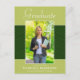 Beautiful 2 photo, graduation announcement postcards. Featuring modern text with elegant script. The graduates photo is thinly edged in a white border and decorative wavy trim. The design is complimented with a background in shades of forest and olive green. The back of the card offers a personalised announcement text space for that special graduate and a second grad photo under a soft misty layer creating a chic backdrop. The perfect card to share this special occasion.