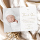 Modern Elegant Script Gold Cross Photo Baptism Thank You Card
