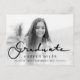 Modern graduation photo postcard featuring a calligraphy Graduate script on a white gradient background that will make the text pop. Suitable for the high school or college graduate. Can be used as a graduation thank you card or grad party invitation.