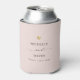 Modern wedding party favour can cooler with your custom names in elegant swirly script calligraphy, the couple's names and the date of your celebration. This is the minimalist blush pink version with a golden heart detail. Great also for bridal showers, engagement or bachelorette parties.
