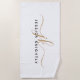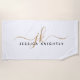 Personalised modern beach towel with simple, fancy script initials or monogram and name in your choice of colour combinations (shown in gold and black text against an editable white background) for a stylish look. CHANGES: Change the background colour, choose a styled graphics background or change the text font style, colour, size and placement in EDIT for a custom design. ASSISTANCE: For help with design modification or personalisation, colour change, resizing, transferring the design to another product or would like coordinating items, contact the designer BEFORE ORDERING via the Zazzle Chat MESSAGE tab below or email makeitaboutyoustore@gmail.com.