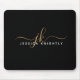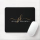 Modern Elegant Script Monogram Initials Black Gold Mouse Mat