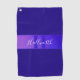 Modern Elegant Script Name & Monogram Ombre Purple Golf Towel
