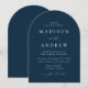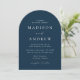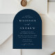 Add a touch of timeless elegance to your wedding with our minimalist and modern wedding invitations, featuring your details in white lettering paired with graceful calligraphy script. Set against a classic navy blue background, these invitations exude sophistication and style, perfect for any season. The contemporary arch shape design adds a modern and unique flair, making these navy wedding invitations ideal for romantic ceremonies, formal celebrations, or elegant evening events. Set the perfect tone for your special day with this timeless and versatile design.