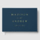 Elegant wedding guestbook featuring your names and wedding date in gold foil lettering with a navy background. Personalise the spine of the simple wedding guest book with your married name and wedding date. The back of the navy and gold foil wedding guest book displays your horizontal photo.