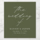 Add a sophisticated touch to your celebration with this modern olive green wedding wine label. The design features the phrase “the wedding of” in elegant white calligraphy script on a rich olive background. Personalise the label with your names, wedding date, and location. Perfect for wedding receptions, this minimalist and timeless wine label pairs beautifully with elegant or rustic wedding themes.