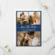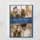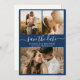 Elegant modern navy and white script 3 photo collage wedding save the date announcement card. Chic minimalist design template feature three (3) couple photo collage and elegant cursive hand lettering typography script „Save the Date” text in white on navy blue background colour. If you need help or matching items, please contact me.