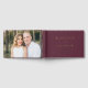 Elegant wedding guestbook featuring your names and wedding date in gold foil lettering with a purple background. Personalise the spine of the simple wedding guest book with your married name and wedding date. The back of the purple and gold foil wedding guest book displays your horizontal photo.