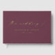 Elegant wedding guestbook featuring "the wedding of" displayed in a modern gold foil calligraphy script with a purple background. Personalise the front of the simple wedding guest book with your names and wedding date. Add your married name and wedding date to the spine of the photo guest book. The back of the purple and gold foil guest book displays your horizontal engagement photo.