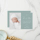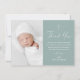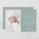 Modern Elegant Script Sage Green Photo Baptism Thank You Card