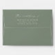 Simple, modern wedding envelopes featuring "the wedding of" displayed in an elegant white calligraphy script on a sage green background. Personalise the envelope flap with your names and return address.
