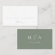 Modern wedding place cards featuring a sage green calligraphy script on the front with a white background. The back of the sage green place cards feature your monogram initials and your wedding date shown below in white lettering on a sage green background. The elegant script place cards are perfect for modern wedding receptions, rehearsal dinners, and other special events.