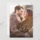 Announce your upcoming wedding date with this simple save the date featuring elegant handwriting script. The design offers two photos: a vertical picture on the front and a small horizontal picture on the back. The backside offers custom text for more wedding details.