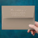 Simple, modern wedding envelopes featuring "the wedding of" displayed in an elegant white calligraphy script on a taupe background. Personalise the envelope flap with your names and return address.