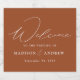 The modern wedding sparkling wine labels featuring "Welcome" displayed in an elegant white calligraphy script on a terracotta background. Personalise the terracotta wedding sparkling wine labels with your names and wedding date. The simple wedding sparkling wine labels are perfect to use for wedding receptions, rehearsal dinners, and engagement parties.