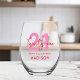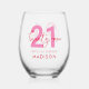 Modern Elegant Script Twenty One 21st Birthday Stemless Wine Glass