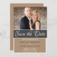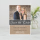 Modern elegant wedding photo Save the date card. Elegant and trendy typography, grey, white and beige colour scheme. Personalise the card with your photo - insert the photo into the template. Easily personalise any text on the card or erase any text if you don`t need it.