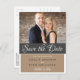 Modern elegant script wedding photo Save the date announcement postcard. Elegant and trendy typography on the front and the backside of the card, grey, white and beige colour scheme. Personalise the card with your photo - insert the photo into the template. Easily personalise any text on the card or erase any text if you don`t need it.