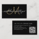 This business card features a modern script typography monogram on the front and QR code on the back. Personalise it with your own text and QR code.