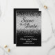 This elegant and modern 'Save the Date' features silver glitter confetti dispersing into a pure black background. You can fully personalise it by going to the customise menu. This is part of a beautiful wedding suite that includes an invitation, a menu and many other essentials.