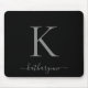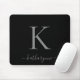 Modern Elegant Silver Monogram Script Black Mouse Mat