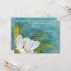Horizontal 5 x 7 inch sized wedding invitation for a modern yet romantic design that is both simple and yet elegant. EXQUISITELY hand painted artwork with clean white typography layout is a bold and sophisticated choice for a contemporary, yet romantic garden wedding. A single white magnolia blossom is set against a rich, deep blue background that sets off the white, modern style text. A complete set of products are available to coordinate. Copyright, Audrey Jeanne Roberts, all rights reserved.