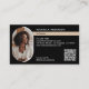 Enhance your professional branding with this sophisticated double-sided business card, perfect for making a lasting impression. Featuring a stylish black background with a prominent photo placeholder, the front of the card allows you to showcase your professional image alongside your business name and slogan or description, with beige accents. The back of the card continues the elegant design with additional space for your essential contact information, and social media handles. A QR code is included for quick access to your online profiles or portfolio. This modern business card design is ideal for professionals looking to convey a polished and personable image.