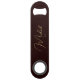 Create your own custom, personalised, modern elegant faux gold calligraphy typography script font monogrammed on dark brown background, trendy chic stylish cool professional extra durable stainless steel speed bottle opener bar key featuring a length and design to open bottles with speed and ease. Simply type in your name / family name, to customise. Makes a great gift for birthday, christmas, holidays, wedding, graduation, fathers day, friendship day, special tastings, milestone birthdays, and more, for your loved ones, mum, dad, girlfriend, boyfriend, husband, wife, couples, newlyweds, beer lovers, bartenders, men, women, him, her, friends and family.