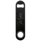 Create your own custom, personalised, modern elegant faux gold calligraphy typography script font monogrammed on black background, trendy chic stylish cool professional extra durable stainless steel speed bottle opener bar key featuring a length and design to open bottles with speed and ease. Simply type in your name / family name, to customise. Makes a great gift for birthday, christmas, holidays, wedding, graduation, fathers day, friendship day, special tastings, milestone birthdays, and more, for your loved ones, mum, dad, girlfriend, boyfriend, husband, wife, couples, newlyweds, beer lovers, bartenders, men, women, him, her, friends and family.