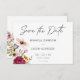 Our elegant wedding save the date card with a striking bouquet of summer meadow wildflowers in blush pink, magenta, cream and yellow with lush greenery, is a modern masterpiece. This design is a breathtaking blend of modern elegance and timeless romance. Created by Simply Farmhouse Press.