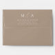 Elegant monogram wedding envelopes featuring your monogram displayed in white lettering with a calligraphy script ampersand in the middle of the two initials on a taupe background. Personalise the envelope flap with your names and return address.
