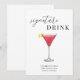 This modern, elegant wedding sign for a signature drink features a minimalist design, classic serif font, elegant script font, and a watercolor drink. Edit the name and ingredients of the drink for your wedding or event.